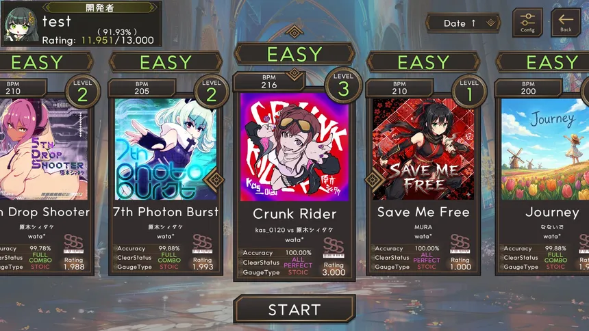 『8ave.-Octave-』 is an 8-keyboard music game featuring a piano motif. To focus solely on playing the keys, no special operations like flicks or slides are required. The sheet music consists only of notes and long notes, allowing you to easily enjoy the feel of playing piano on a keyboard.