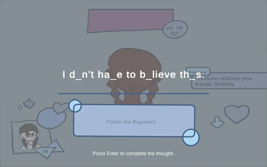 A psychological story-driven RPG where your choices shape Lucia’s fate. Confront distorted inner voices in turn-based hallucination battles and navigate a fragile mind where reality slowly begins to fracture.