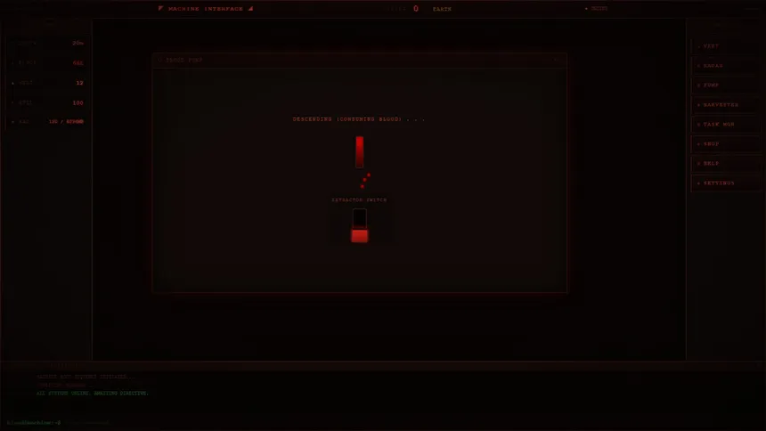 Sanguis OS is a dark, claustrophobic UI-based horror simulation. Take control of a blood-fueled drilling machine descending into the 9 layers of Hell. Manage engine heat, harvest demons for fuel, and fight off corrupting demonic malware before your system crashes and the hull is breached.