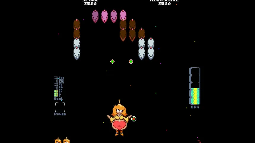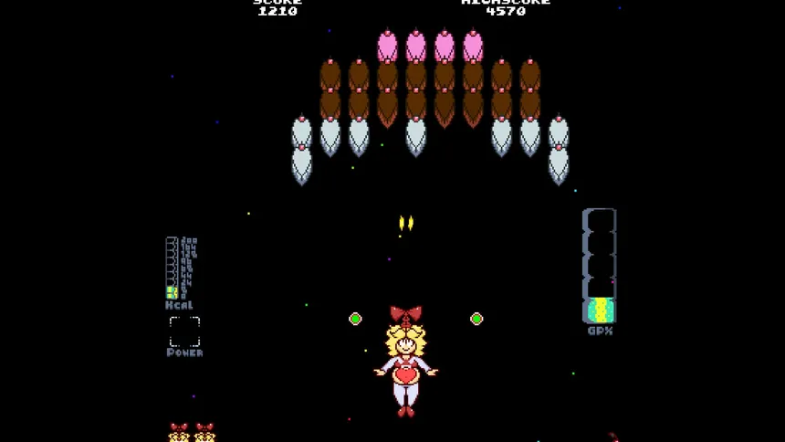 Grow in strength and sexy, adorable blubber as you destroy alien cakes in this fixed shooter arcade throwback!