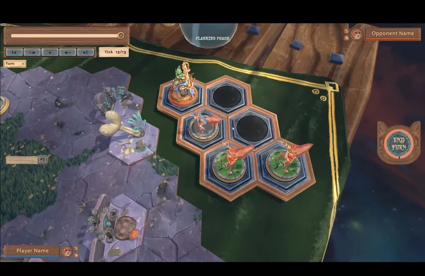 Stuck in a battle that repeats itself, where each action permanently shapes the loop, you must deploy pieces to attack, defend, and manipulate an ever-growing sequence of past moves across the past, presence and future in this turn-based tactics game.