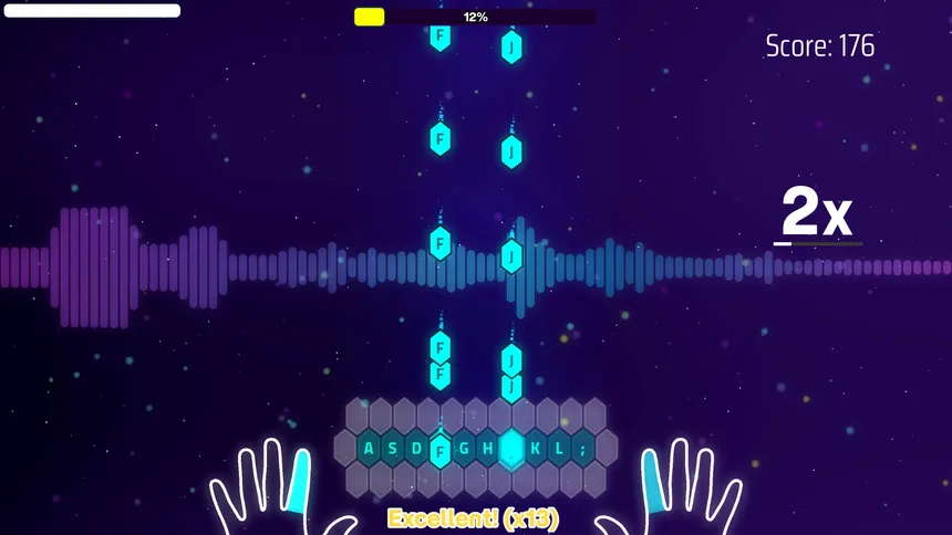Rhythm based typing game. Improve your typing skills or learn to type while typing to the beat on levels of varying difficulty from no typing experience to pro typist.