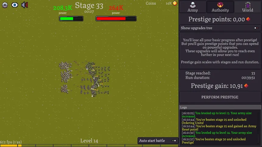 Start with a single soldier, end up with a massive army. Strategize and command your units, or let them grind on their own. Progress through many unique progression systems and conquer all the stages.