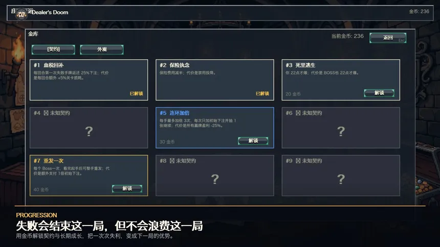 A single-player blackjack roguelike where every bet is a build choice and every floor rewrites the rules. Hit, stand, double, split, and insure your way through escalating bosses, brutal modifiers, and wildly synergetic runs.