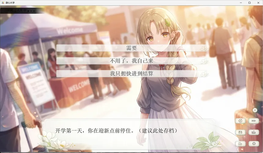 《澄心大学》是一款校园题材剧情向视觉小说。在鲜活而平静的大学日常中,走近四位拥有不同故事的女主角,并通过选择与分支推动人物关系,走向属于你的青春结局。