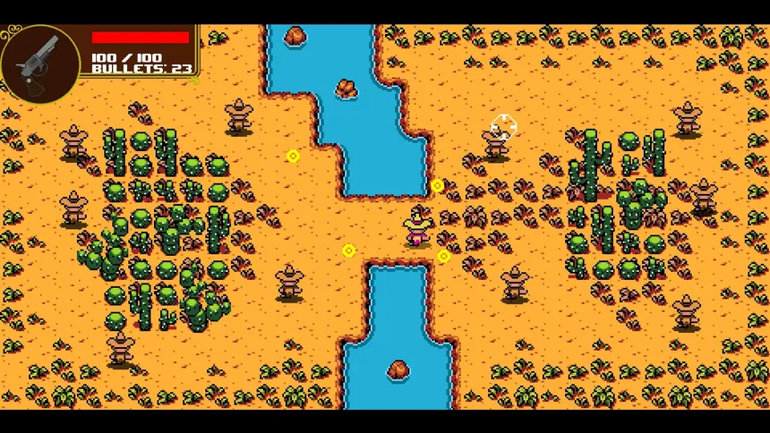 Топ-даун шутер в пиксель-арте с безумными перестрелками, разнообразным оружием и интенсивным экшеном на территории, захваченной бандитами.