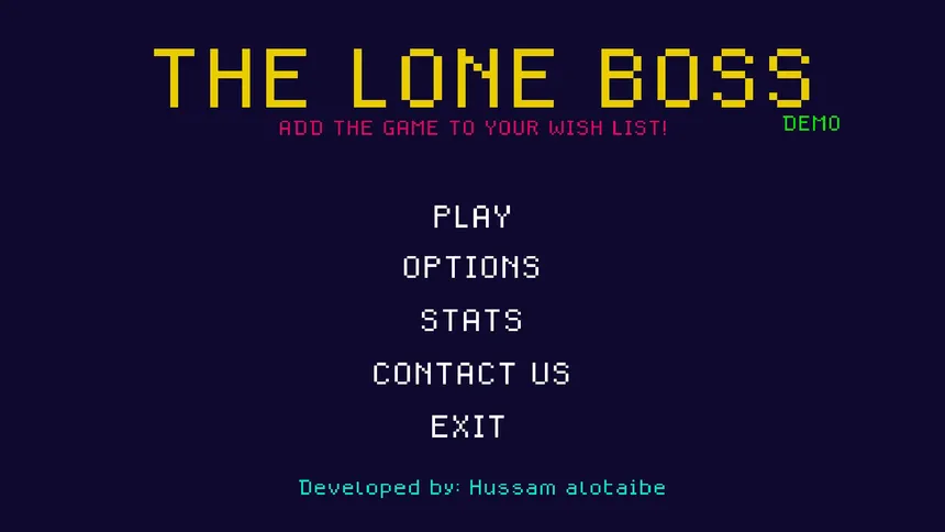The Lone Boss is a challenging 2D pixel art boss fight. Confront a single enemy in a tight arena filled with fireballs and minions. As the boss evolves through multiple states and randomized attacks, one mistake will cost you the fight. Master the patterns and survive the ultimate test of focus.