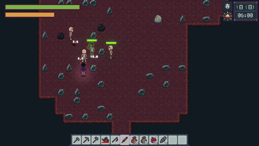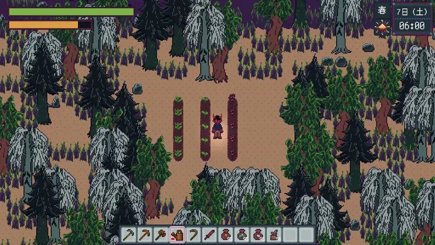 2D-фермерская RPG-песочница в мире демонов. Уютная жизнь и темная некромантия! Воскрешайте зомби и скелетов из останков врагов. Поручайте им работу для автоматизации фермы или вместе зачищайте подземелья. Крафтите снаряжение, развивайте нежить и постройте свою ферму.