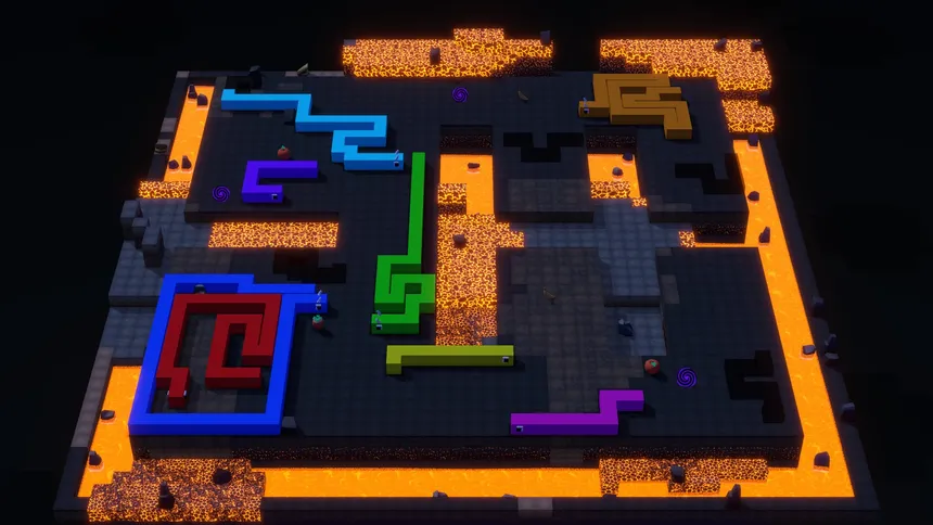 Древняя война между змеями. Живая тьма, питающаяся конфликтом. Пройдите через кампанию из 500 уровней с 20 уникальными персонажами, а затем устройте домашний турнир как пати-игра для 8 игроков с 4 режимами сражений. У классической Змейки наконец есть история.