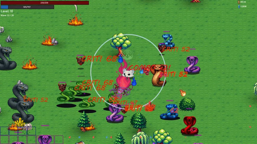 A roguelike survivor where pawed heroes battle swarms of evil snakes. Dodge, dash, and let your weapons do the talking. Collect loot, unlock characters, and grow stronger with every run.