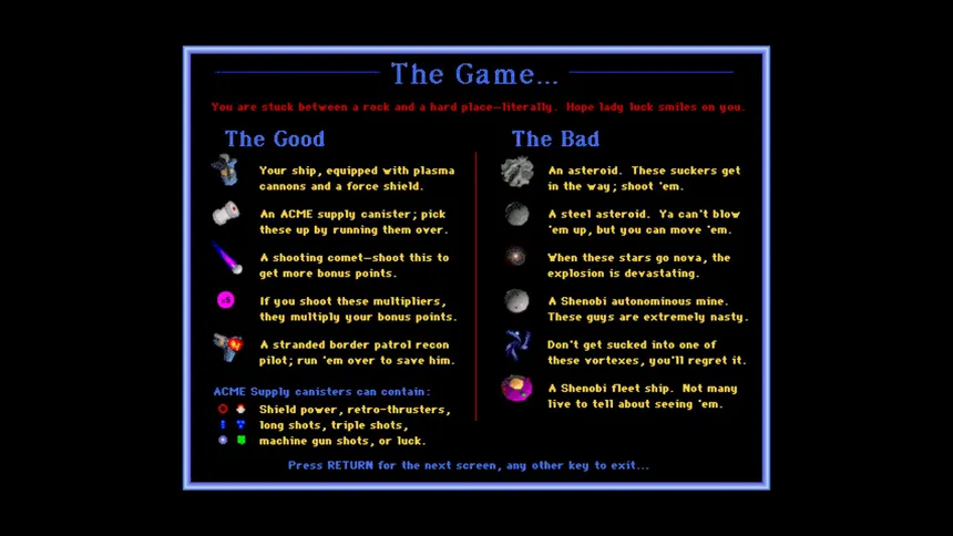 Maelstrom is an open source port of the original shareware game for the Macintosh. It is a fast-action, asteroids-like game, with classic pixel graphics and original sounds.