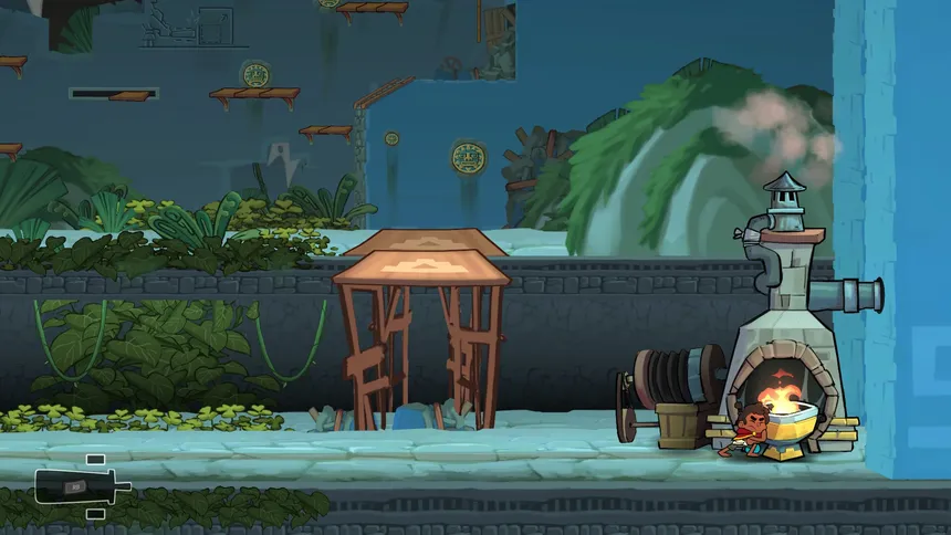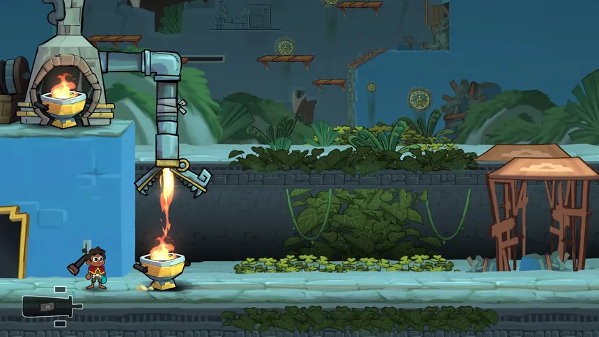 A cartoon-style puzzle platformer set in a mesoamerican civilization where a child must use the powers of an ancient magical artifact to alter the scenery around them, solve puzzles, and save their village from Spanish invaders.