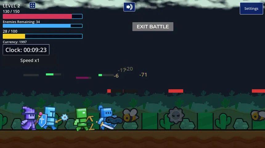 An idle auto battler where your squad fights continuously while you optimize upgrades, trigger hero actives, and break through boss phases.