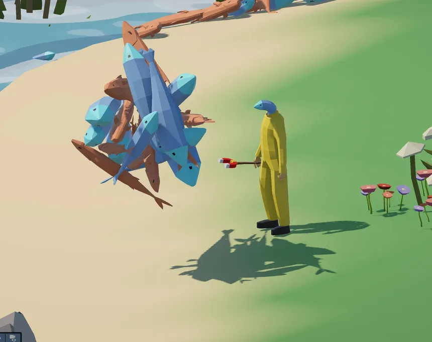 In Feed the Hole, you play as Keith, a half fish-half man running a strange little operation where fishing, hauling, and selling are the heart of the day. The loop is hands‑on and tactile: cast, catch, carry, cook, chop, and cash out... then upgrade your setup and keep the hole fed.