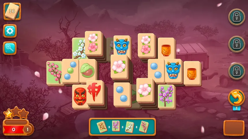 Complete Mahjong puzzles and create beautiful Sakura garden. Clear the waterfall, construct bridges, build shops and restore the ancient castle. Click matching pairs to clear the board.