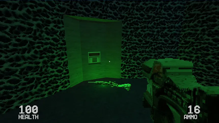 Nuclidean is a retro FPS shooter with a non-euclidean twist, featuring portals and mind bending spaces.