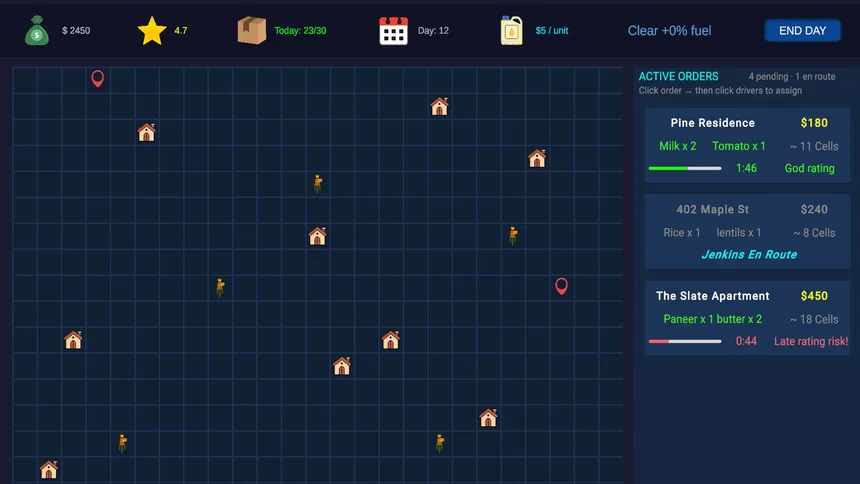 Run a high-stakes neighborhood delivery network. Dispatch drivers, beat the clock, outmaneuver your rival, and never let the milk expire. Manage routes, fuel your vehicles, and build the ultimate delivery empire.