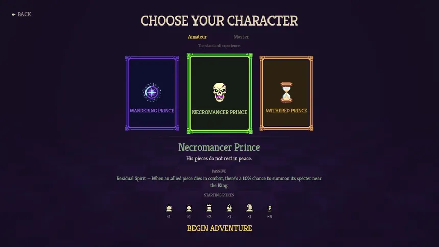 A roguelike deck-building tactical game fused with chess. Choose a cursed Prince, collect pieces with magical abilities, and conquer three acts of boss encounters where the board itself fights against you.