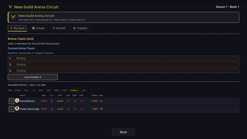 The front office sports experience — but for an MMORPG guild. Scout talent, manage your roster, win arena tournaments, build raid teams, and climb the rankings one boss kill at a time.