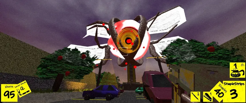 Bring down DEVILISH corporate overlords in this office themed retro FPS. Use office supplies (and much more) to slay your way through and escape HELLISH work spaces. Dismantle the Devil's workforce of twisted salary men, corrupted custodians, and possessed office sundries! Time to get that promotion