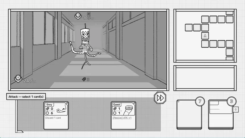 A visual novel with deck-building card battles. Unravel a coming-of-age mystery in a monochrome world. Build a 12-card deck and defeat opponents using strategic timing in simple yet deep Attack-Defense-Enemy battles. Every card counts as you search for the truth hidden in memories.