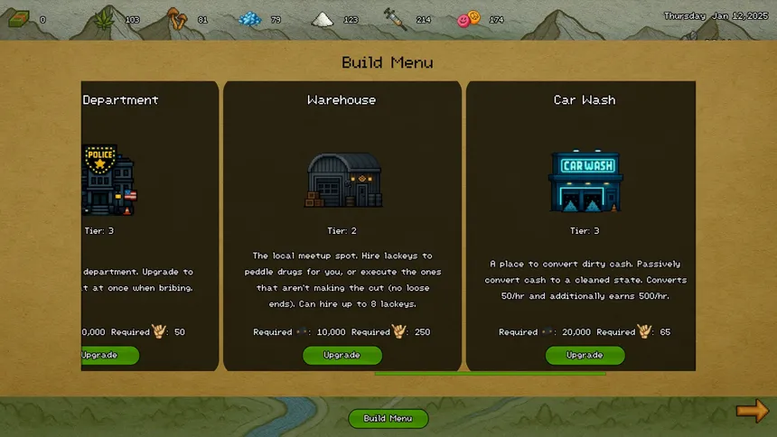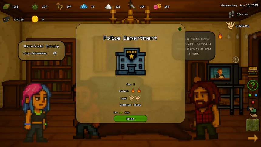 Run your own underground empire in this idle drug-dealing simulator. Produce product, recruit dealers, manage heat with the police, and grow your influence across Shady Pines. Expand your operation, launder dirty money, and buy out the entire city.