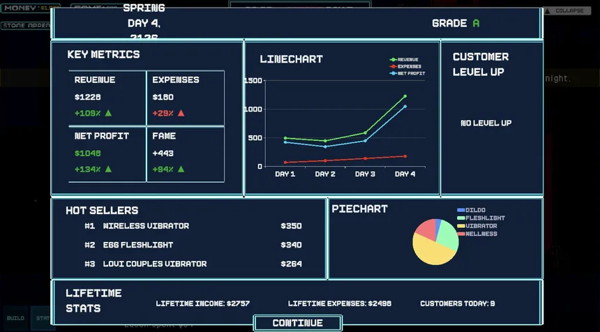 A dynamic management simulator where you build your own sex store and climb to the top, balancing demands from your suppliers and your customers while exploring the world of POPLife.