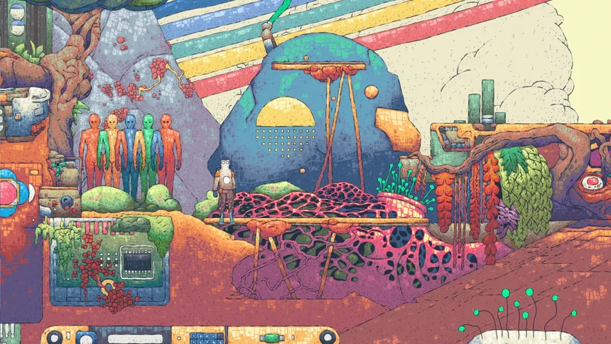 Heavydelic is a 2D Slavic Synthpunk Platformer broadcasting on dead frequencies. Synthetic psychedelia, comic art, VHS tapes, analog ruins & robots resurrected from Slavic mythology. Every asset is manually drawn by Eniac. Signal lost. Game found.
