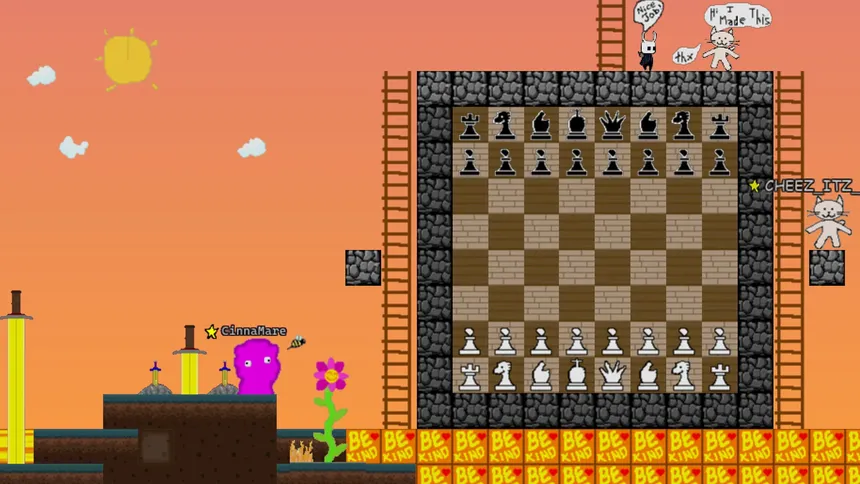 A multiplayer sandbox where players create EVERYTHING. Design blocks, skins, sound effects, NPCs, and more! Place your creations in a live online world where every creation is player-made.