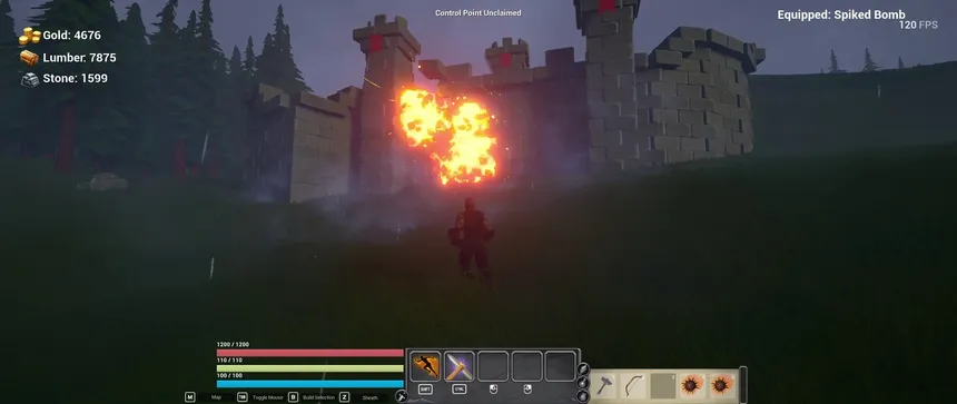 A fantasy multiplayer fortress‑building combat game where 32 players battle, gather resources, and break castles in explosive showdowns