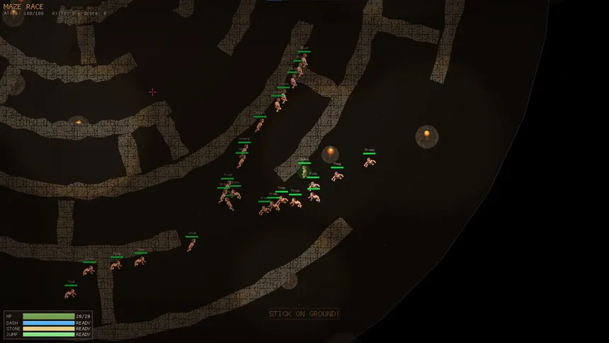 100 игроков падают в пещеру, мчатся через лабиринт и дерутся за одну-единственную мощную Палку. Схватите её, чтобы стать самым сильным -и самым преследуемым. Хаотичный battle royale с видом сверху, пиксельным безумием, боями с камнями и матчами, которые всегда заканчиваются совершенно абсурдным хаосом.