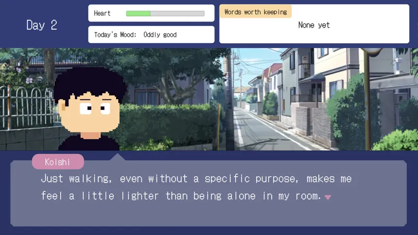 Koishi had long turned a blind eye to the weight in his heart — until one day, his mind and body finally gave way. Taking small, unforced steps, he begins to meet himself again. A quiet adventure about hoping to heal, and slowly moving forward.