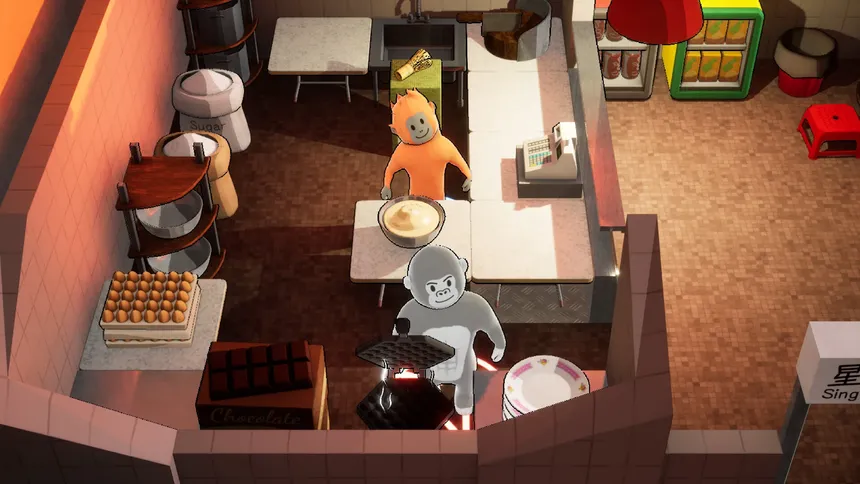 Cook through the chaos in an ape‑paced co‑op kitchen where space is tight and pressure is constant.