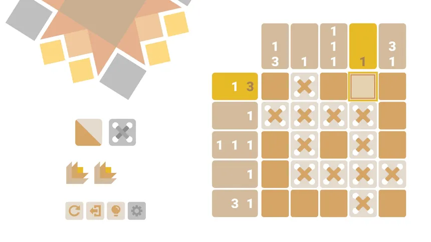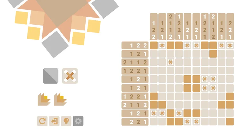 You must complete almazuelas, quilts made from scraps of fabric arranged in geometric patterns. To obtain the scraps, you’ll need to solve a Picross by filling in and removing cells based on the clues. You can rotate and move these scraps until you’ve pieced together the patchwork like a puzzle.
