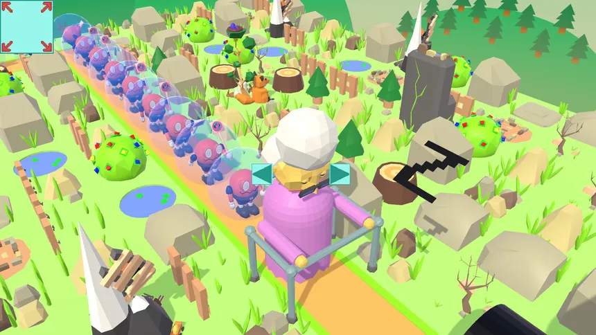 A forced perspective, business themed tower defence game where the player deploys corporate towers to hold back waves of protestors. Demolish special towers to adjust enemy stats and affect the score multiplier. Play through the story to find out if BBB learns anything along the way.
