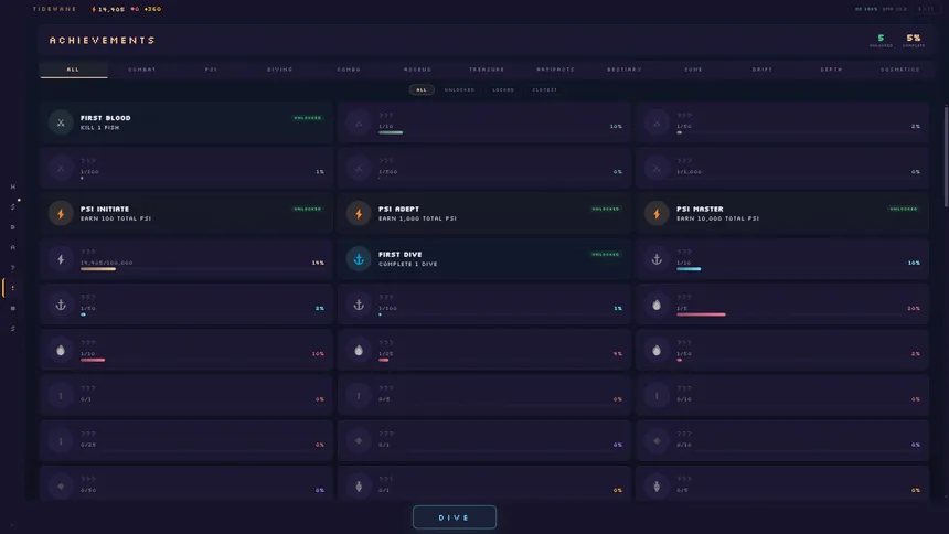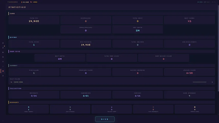Pilot a submarine into the deep. Kill fish, harvest PSI energy, defeat 25 bosses across 5 ocean zones, and ascend through 3 prestige layers. A deep-sea idle dungeon crawler with procedural audio, 40 artifacts, and the OMEGA ending waiting at the bottom.