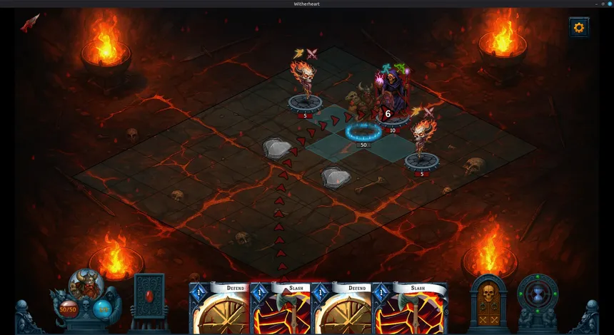 Witherheart is a turn-based roguelike deck-building game with grid-based combat. Build your deck, reposition on the battlefield, and make tactical decisions where every card and every step can turn the tide of a fight.