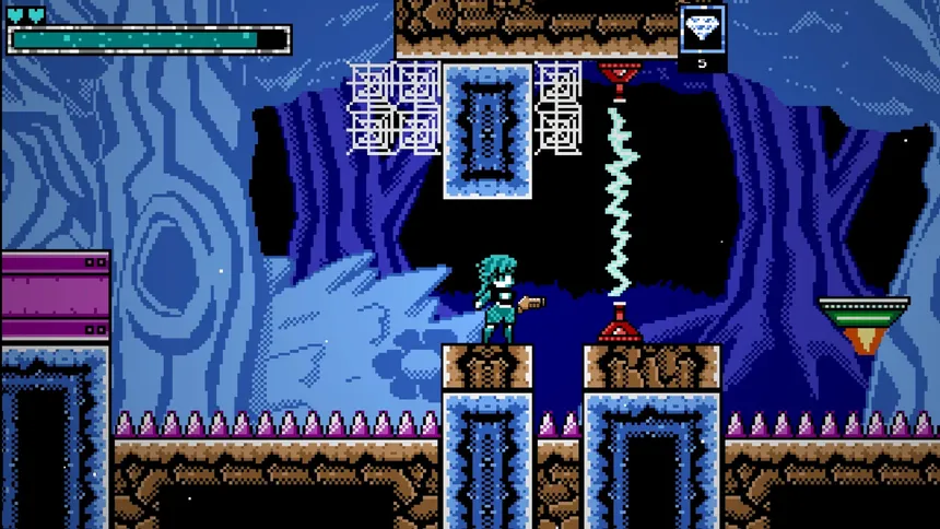 Recover your stolen VAMPIRE MECHA POWER CHASSIS suits from 6 deadly monsters sent by your brother, Dark Moth. Toggle through elemental suits and custom Blaster configurations in this punishing retro 8-bit shooter. Earn mobility upgrades from the Reaper and collect what was stolen from you. GO!