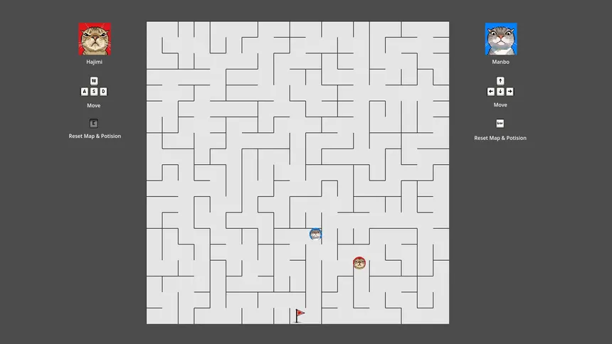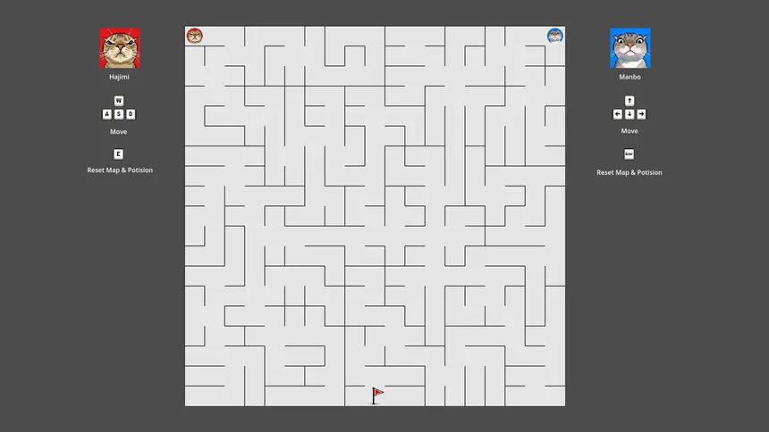 A local two-player 2D maze racing game, where you and your close friend engage in a contest of wits and speed in a randomly generated maze. When your opponent is ahead, you can use a skill to randomly reset the maze and both players' positions to prevent them from reaching the finish first.
