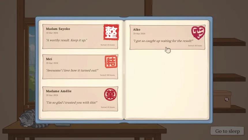 Уютная игра про наведение порядка в мастерской на окраине Токио. Клиенты несут коробки с хаосом: пуговицы, монеты, шестерёнки, марки. Сортируйте, собирайте и раскладывайте всё по местам под приятные щелчки и шорохи. Без таймеров. Чистое удовольствие от идеального порядка.