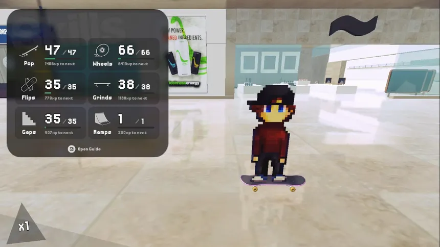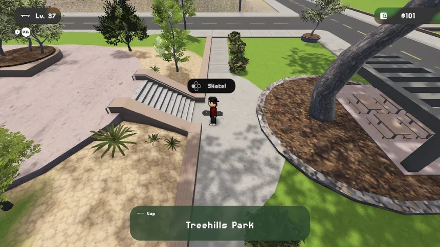 An action-packed 2.5D skateboarding RPG with stats, progression, and skate spots galore