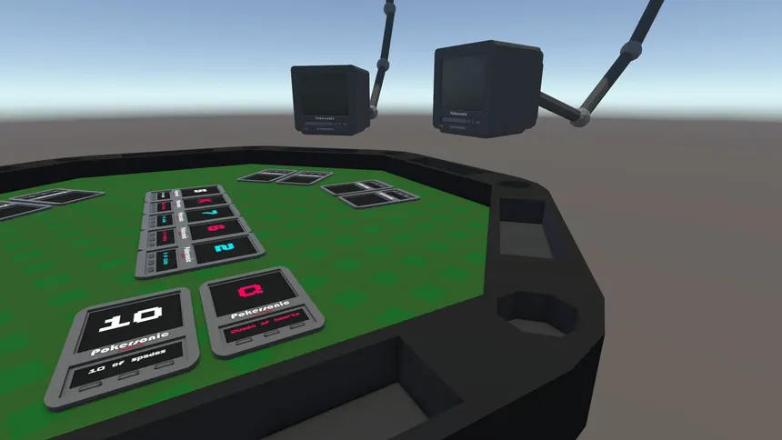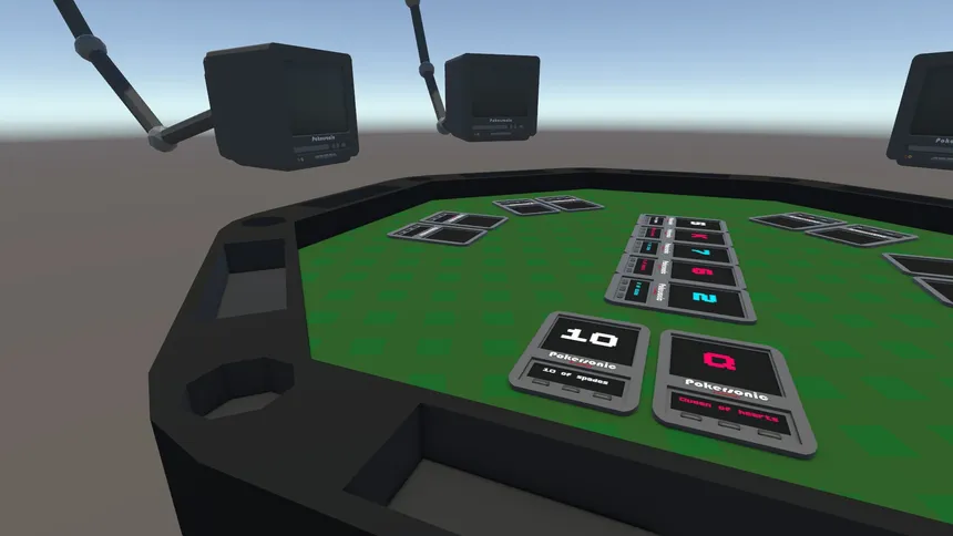 A sci-fi twist on poker! Players' monitors show their real-life expressions, providing the ability for you to detect tells and determine your next move based off them!