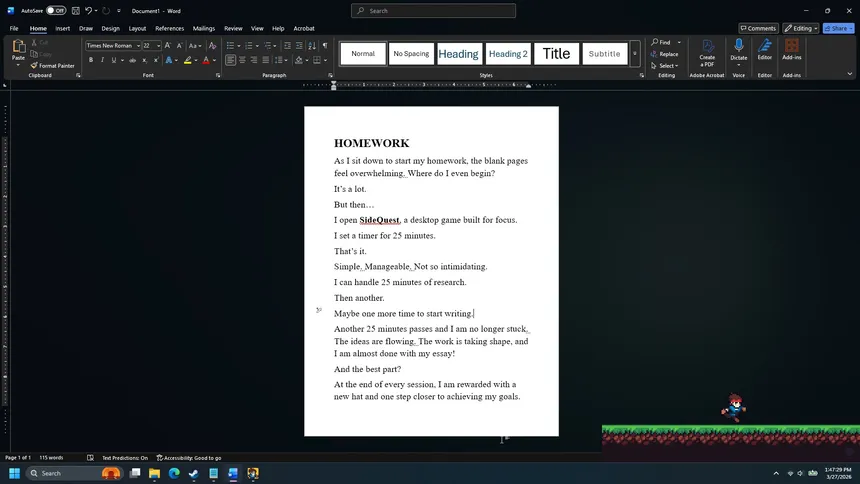 SideQuest — игра от компании Persevering Dev, разработанная для платформы PC. Проект совмещает в себе такие жанры и элементы, как симулятор. Дополнительно игроки выделяют такие особенности игры, как казуальная игра, idle-игра, утилиты и кастомизация персонажа. Игра рассчитана на одиночное прохождение, многопользовательские режимы не предусмотрены.
