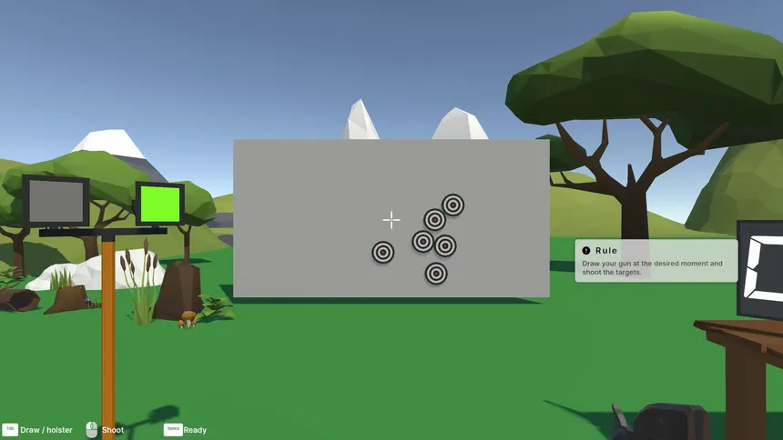 Draw and Fanning is an intuitive, simple, and powerful aim training game focused on speed. Test your limits with a single revolver!