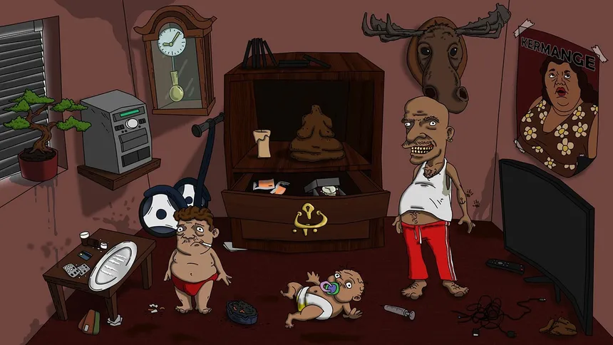 A hand‑drawn, old‑school point‑and‑click adventure filled with dark humor and unapologetically over‑the‑top violence. Step into the shoes of the degenerate bailiff Vladimír Brehowski and follow him through his final day on the job.