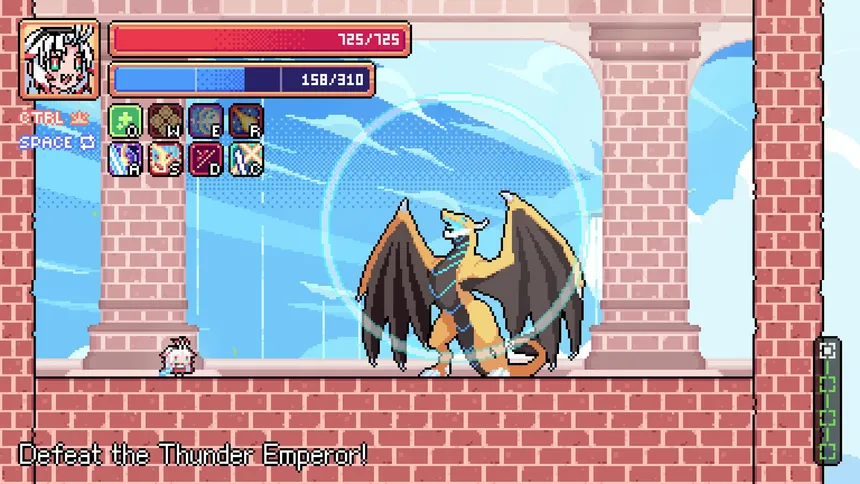 “Before your planet gets blown into smithereens, take this sword and protect yourself.” Embark on a colorful 2D pixel action adventure in Deus Exia! Slash, parry and combo though four distinct lands. Collect cards and skills to craft powerful builds — then overcome deadly enemies and bosses.