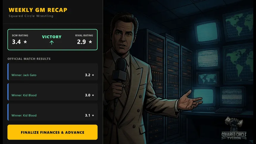 Step into the role of a wrestling promoter! Sign talent, book matches, manage intense rivalries, and fight for TV ratings in the ultimate GM simulator.