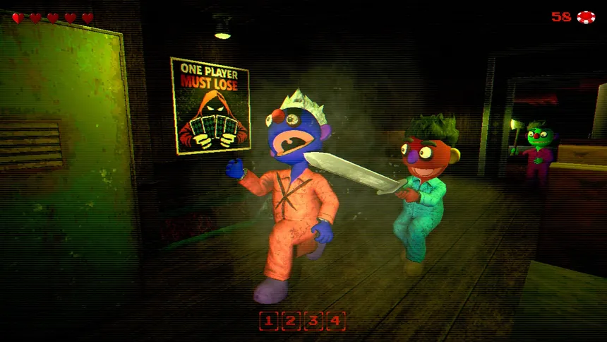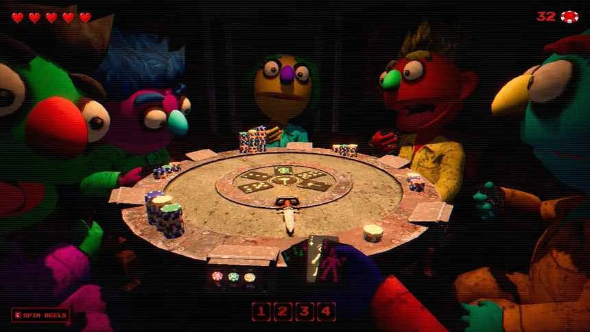 A co-op horror game where one player loses a deadly card game and is hunted by the other players. Up to 6 gamble with their lives at a card table deep underground. Win chips, spin your slot machine for rule-bending modifiers. When the alarms sound, the hunt begins.