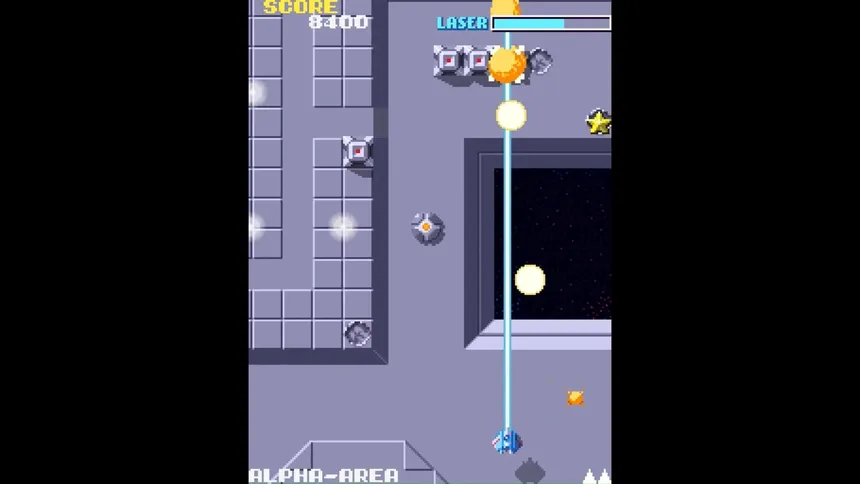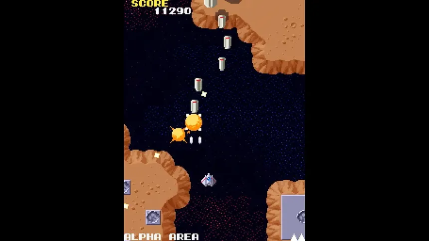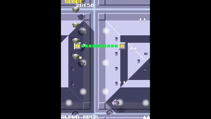 A vertical scrolling shooter where you fire your main shot and strategically switch between limited ammo special weapons to take down enemies. Earn bonus points by clearing areas, and defeat as many enemies as possible before the game ends to achieve a high score.