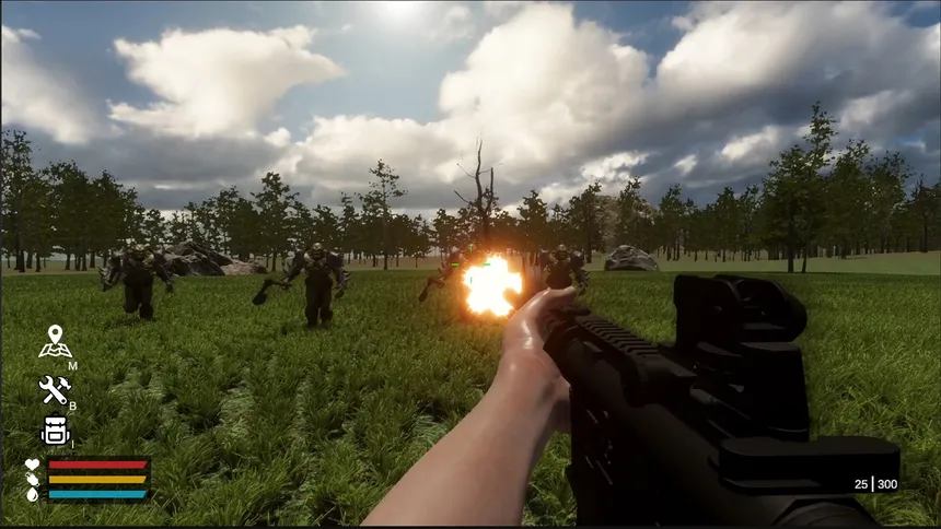 From stone tools to modern weapons and giant mechs — survive, craft, and conquer another world.